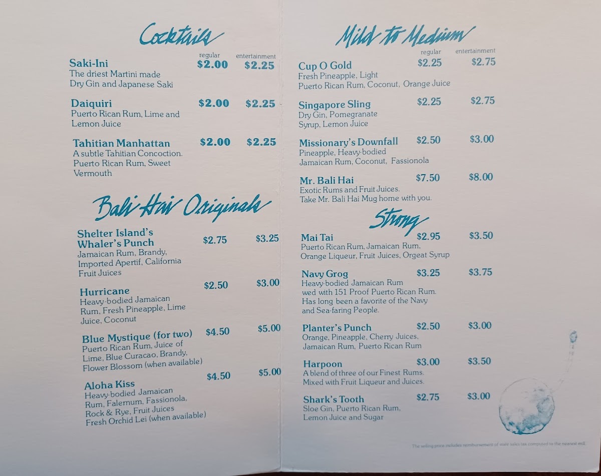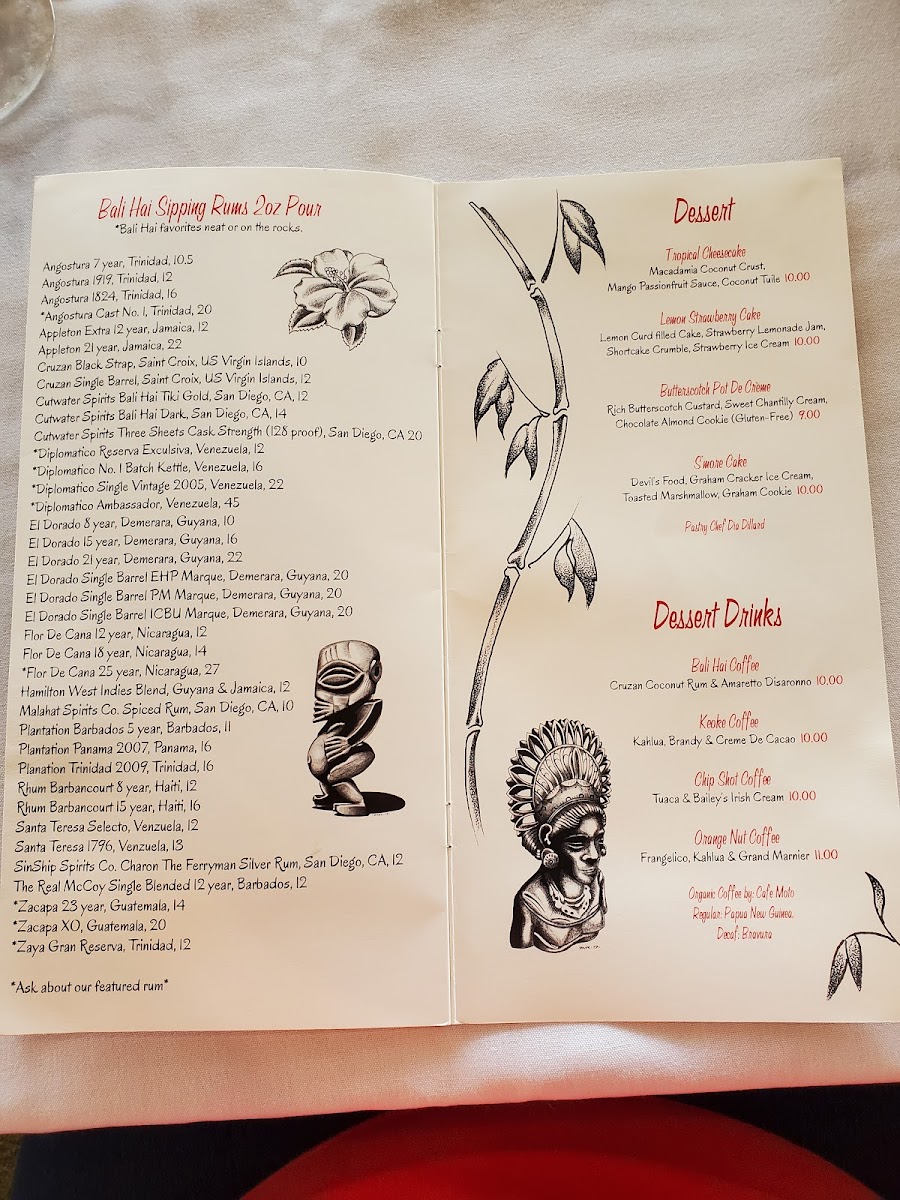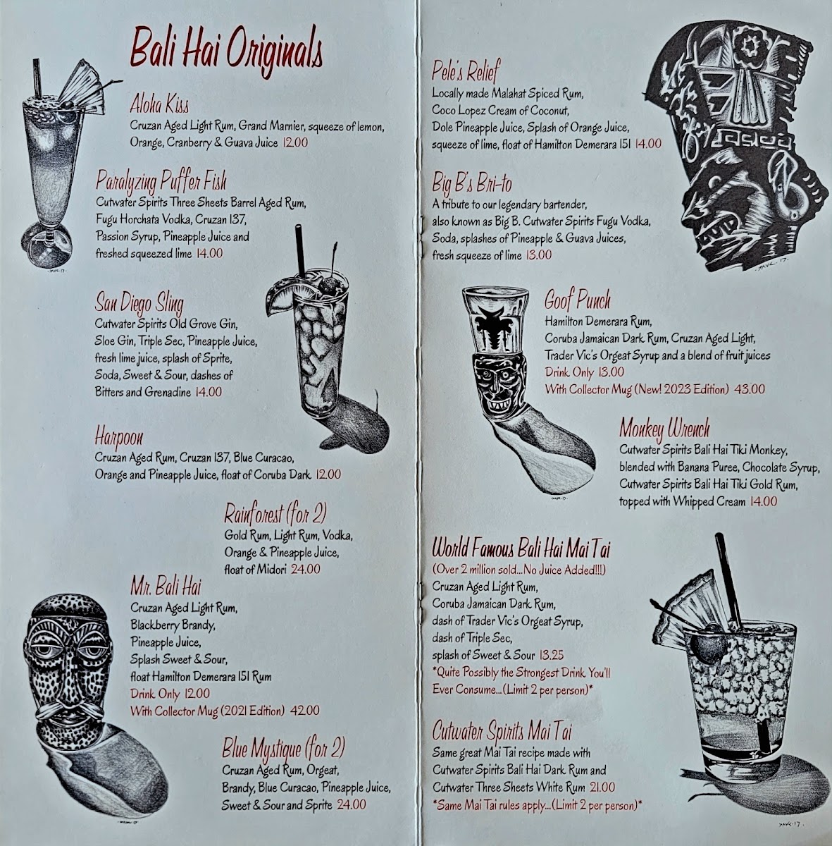 The menu at Bali Hai Restaurant offers a relaxed yet thoughtfully crafted selection of Polynesian-inspired dishes and tropical cocktails. It features a blend of casual bites and satisfying entrees, creating an inviting space to enjoy both lighter fare and more substantial meals throughout the day.