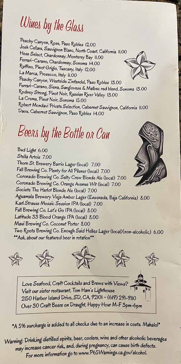 Whether visiting after a day on the water or settling in for a relaxed meal with friends, the menu’s variety and approachable style invite guests to take their time and enjoy a taste of the islands right in San Diego.